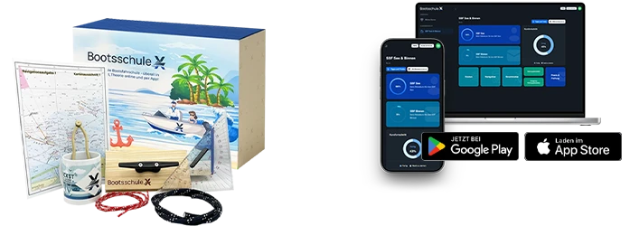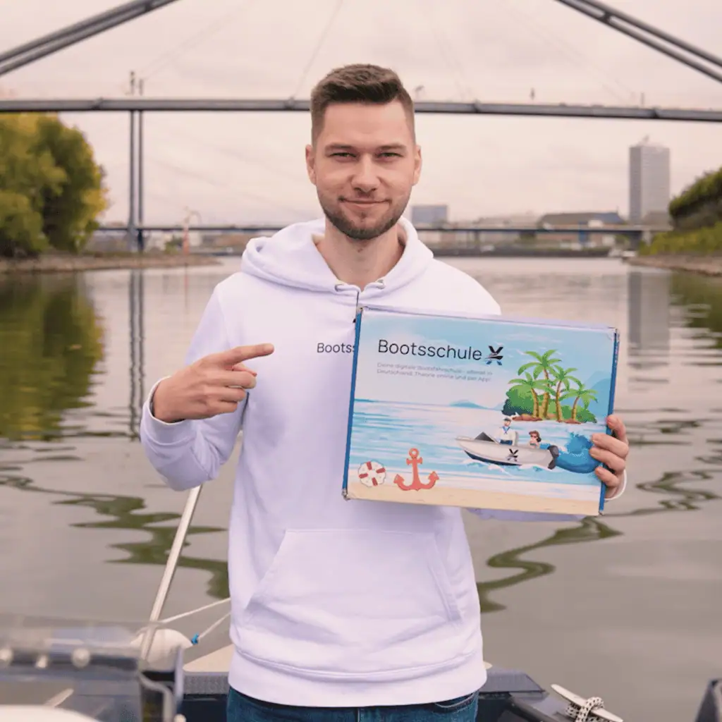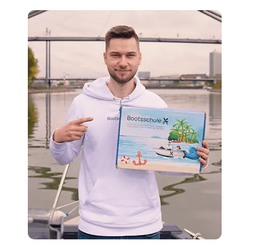 Du bekommst sofort Zugriff auf unsere Lernplattform mit allen Theorie-Inhalten, die Du für den Bootsführerschein brauchst. Deine Willkommensbox ist ebenfalls im Preis enthalten und macht sich auf den Weg zu Dir, sobald Du sie anforderst.
